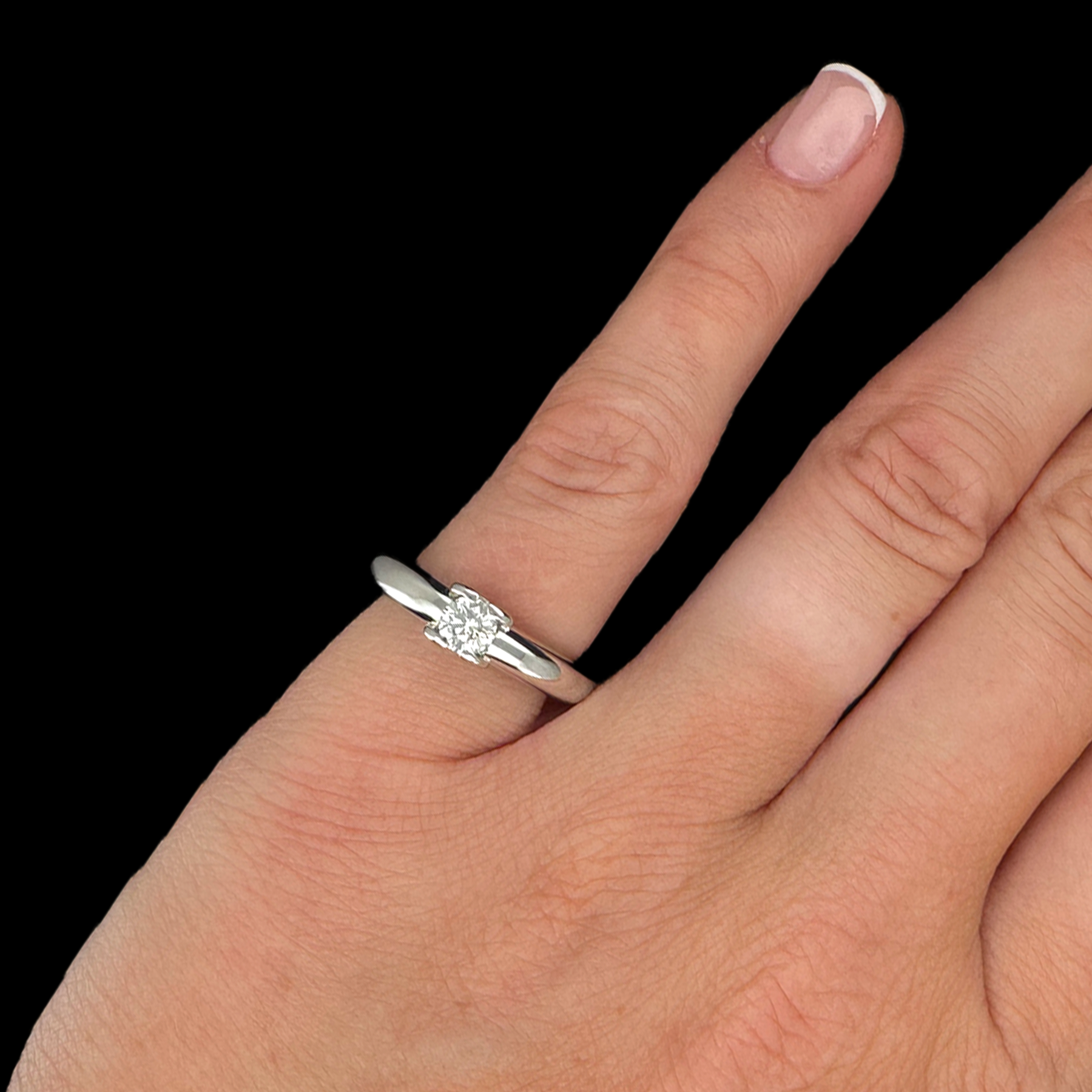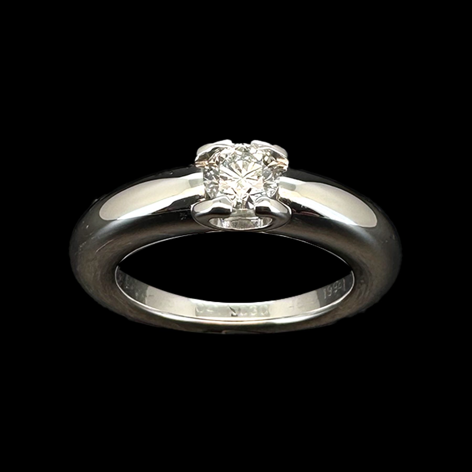 Bague Cartier Classic “C” de Cartier De Solitaire 1998, sertie d’un Diamant d’environ 0,30Ct. Les 4 griffes forment deux “C” de Cartier. Composée d’un large anneau élégamment serti d’un diamant de taille brillant d’environ 0,30Ct.