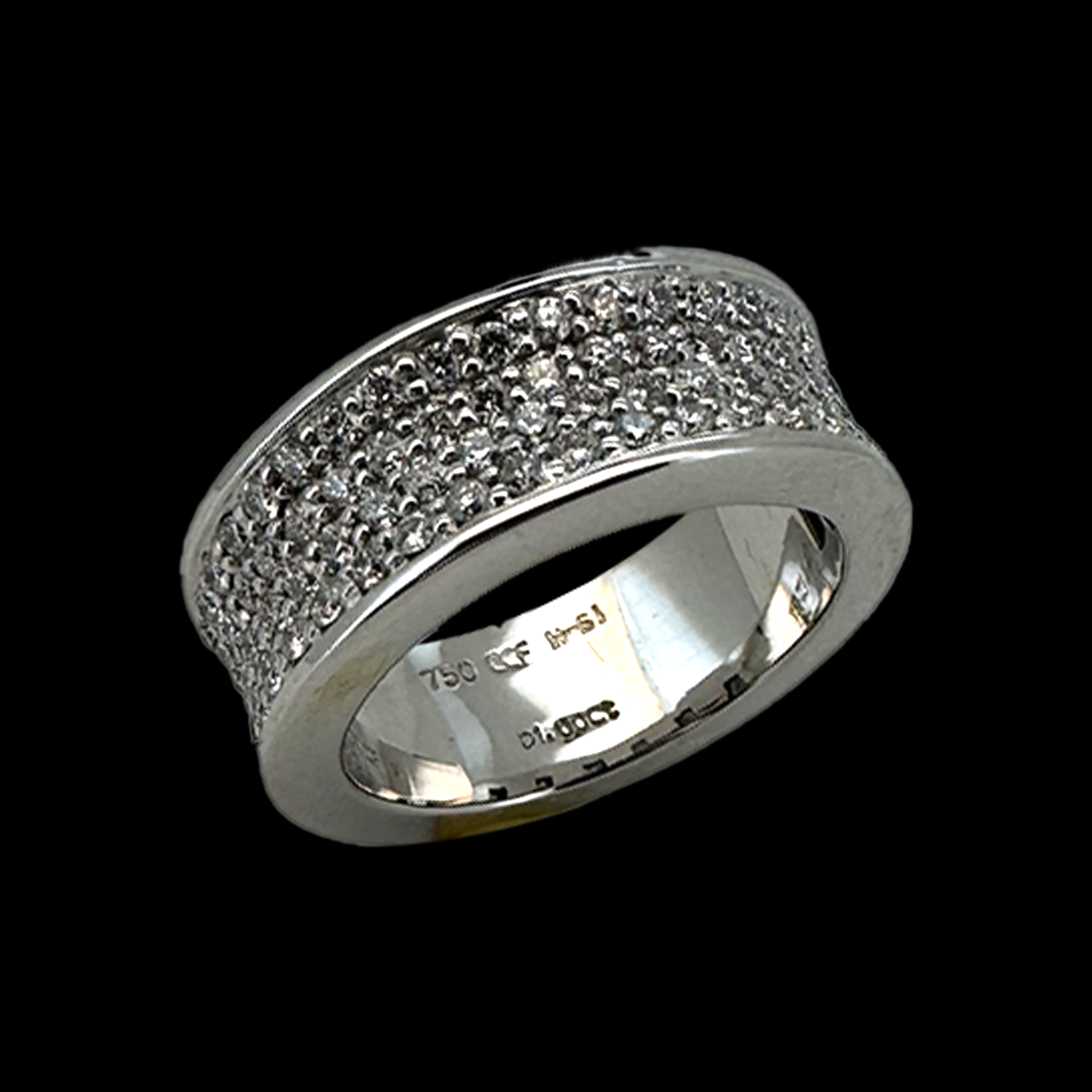 Description : Bague en Or Gris 750 sertie de Diamants taille moderne pour un poids total de 1ct et de qualité HSI.