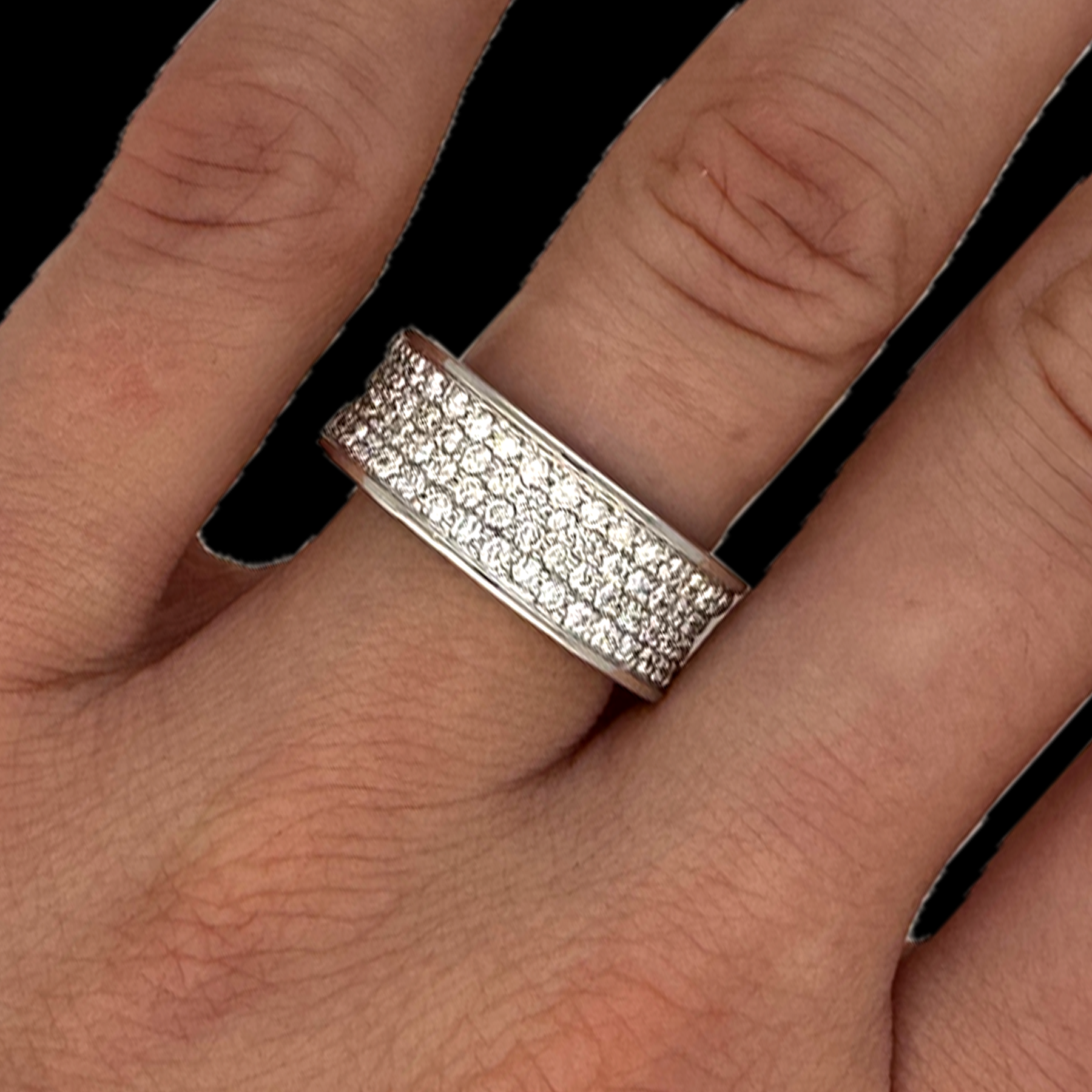 Bague en Or Gris 750 sertie de Diamants taille moderne pour un poids total de 1ct et de qualité HSI.