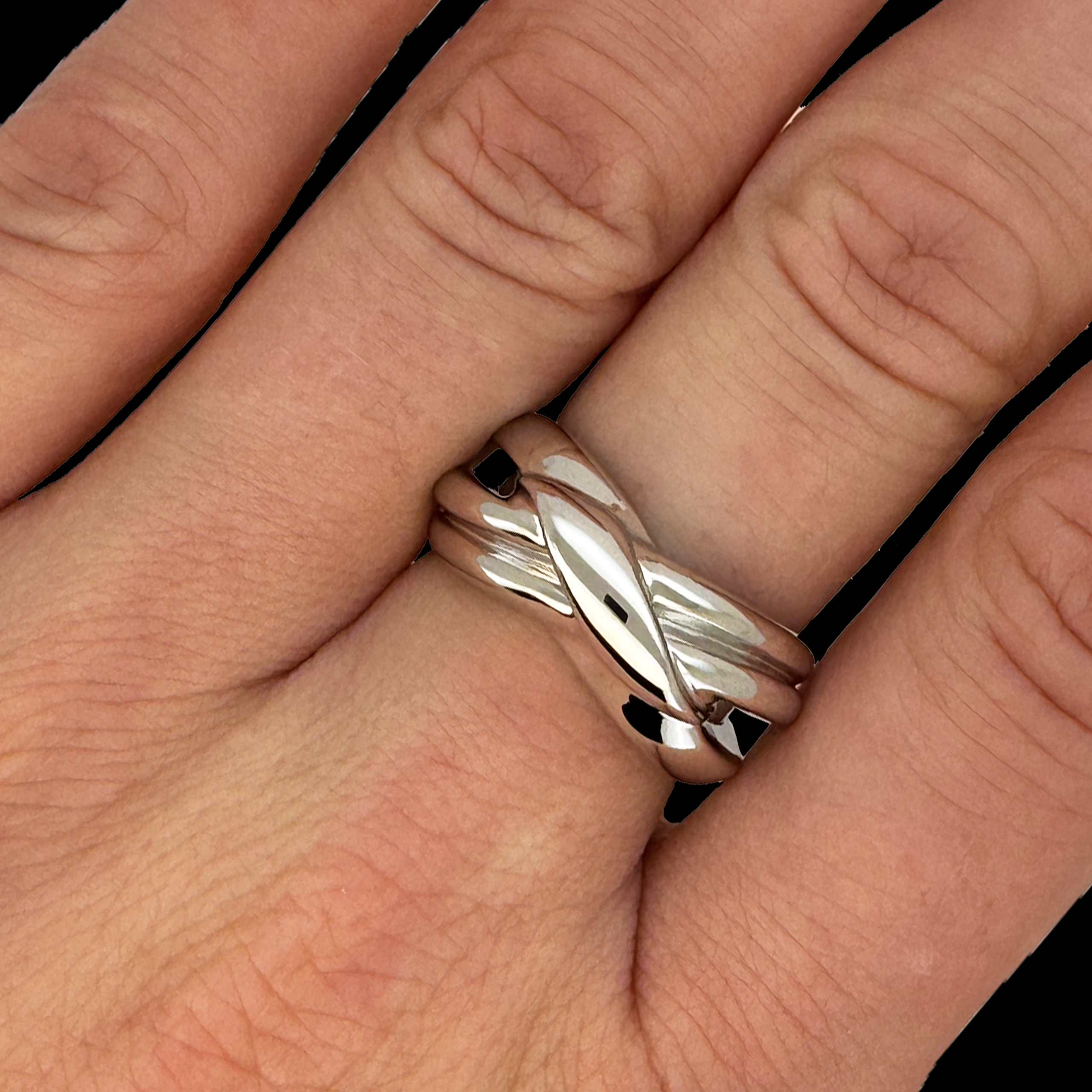 Magnifique bague intemporelle Carl Bucherer OR Gris 18 Carats Torsadée.