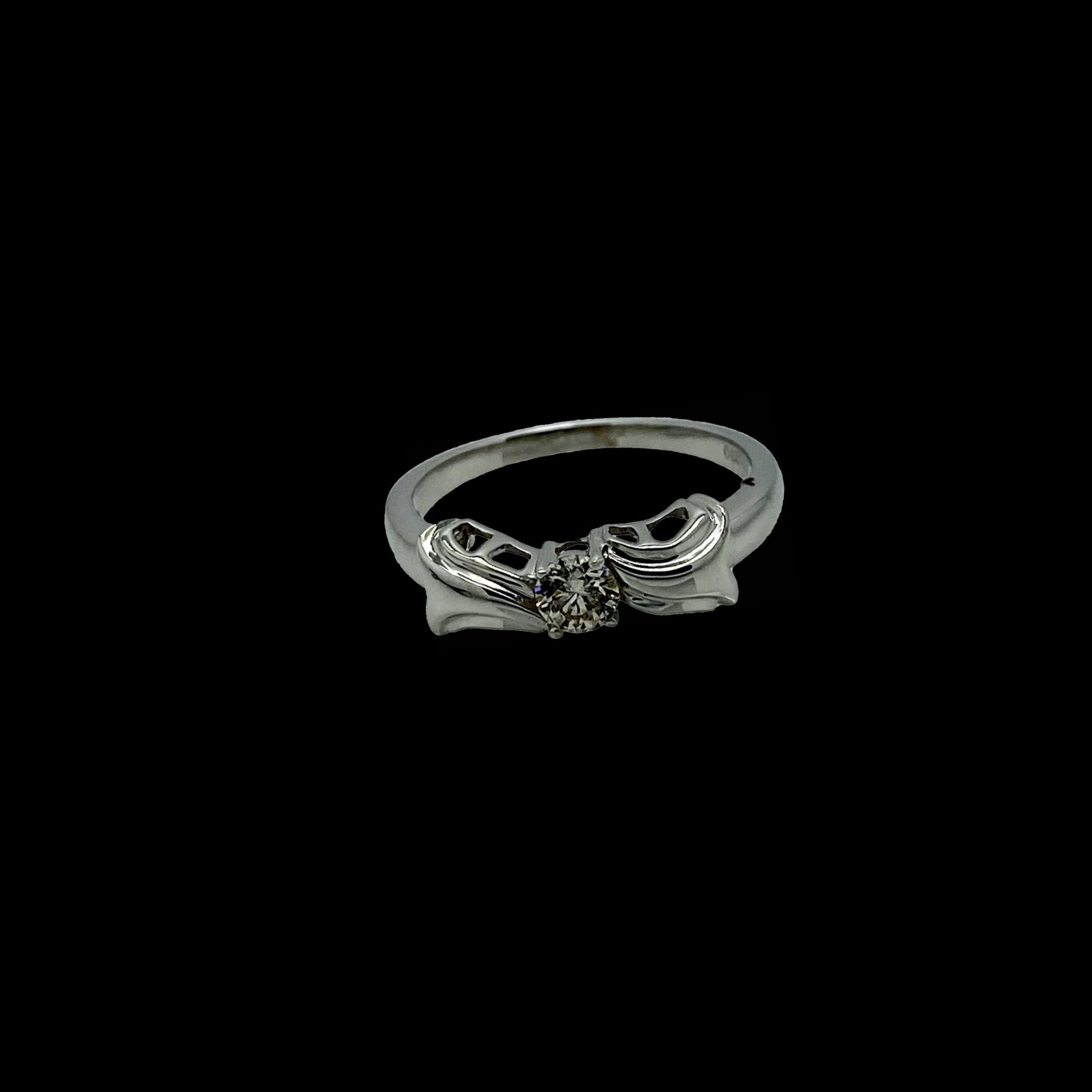 Description : Magnifique solitaire décoré d’un petit noeud en or gris 18K serti d’un Diamant de 0,25ct. TW