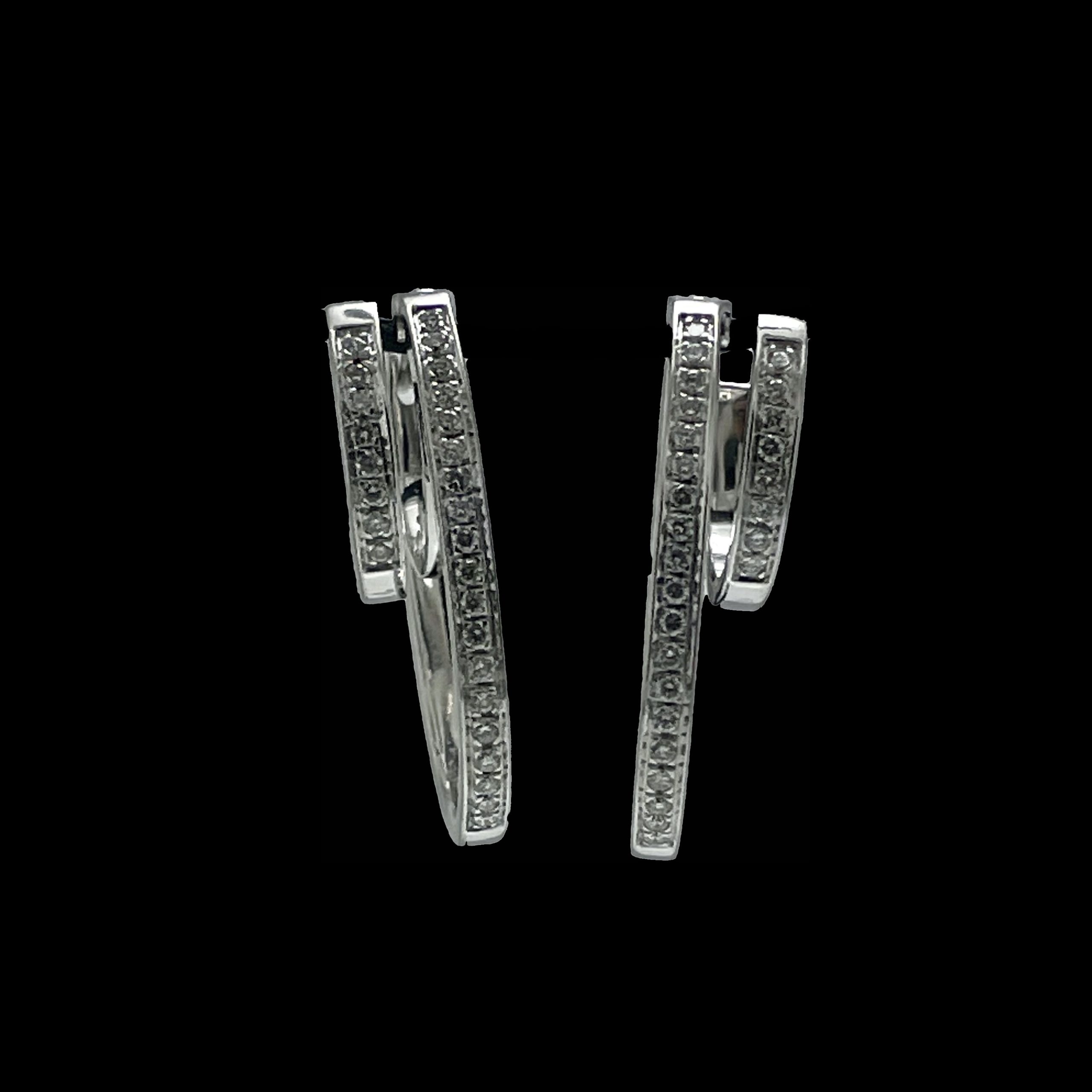 BOUCLES D’OREILLES DOUBLE CREOLES EN OR GRIS 750 SERTIE DE 27 DIAMANTS