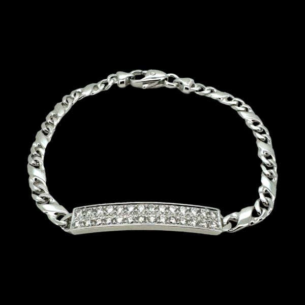 Description : Bracelet Gourmette en Or Gris 750, serti de 28 Diamants taille brillant moderne Top Wesselton.
