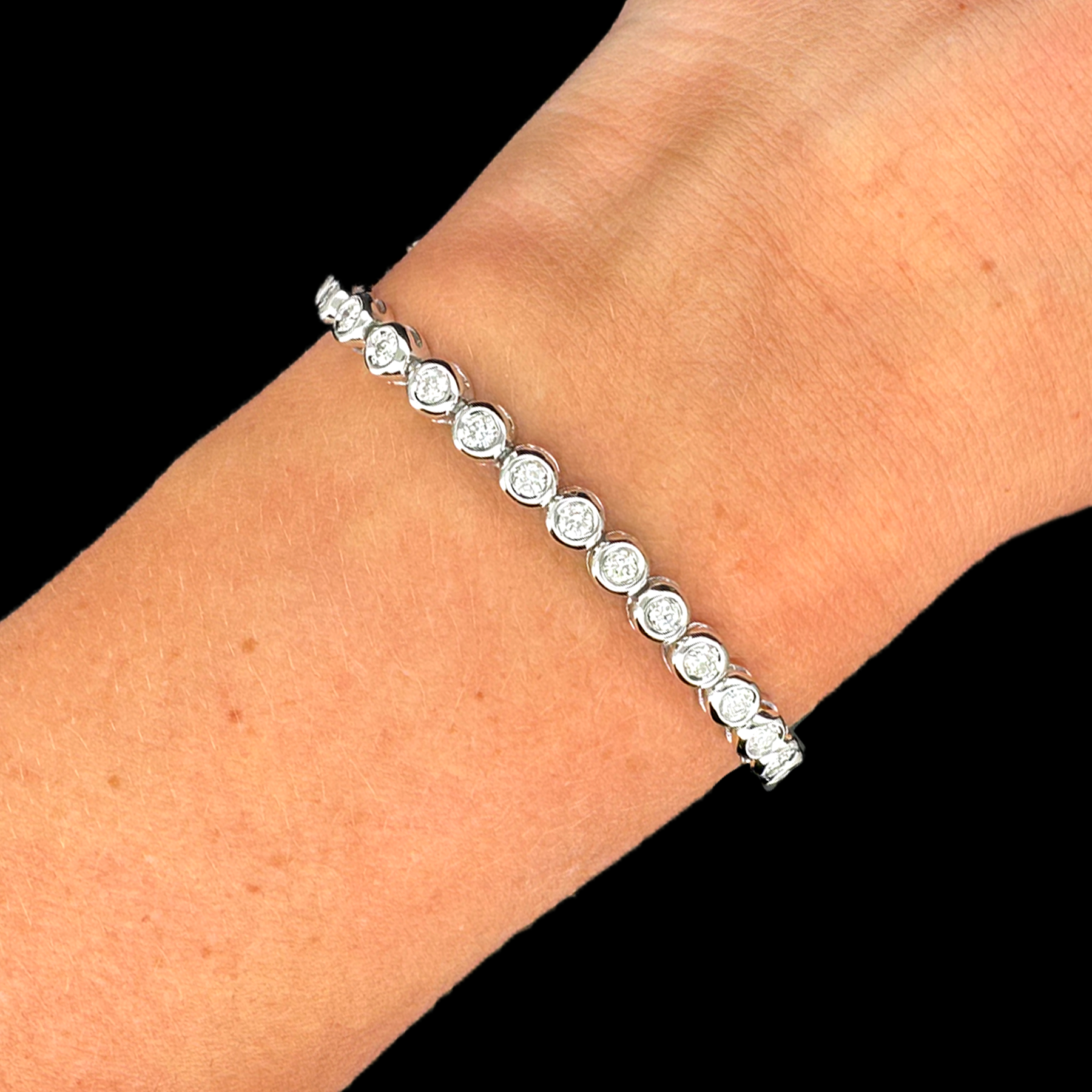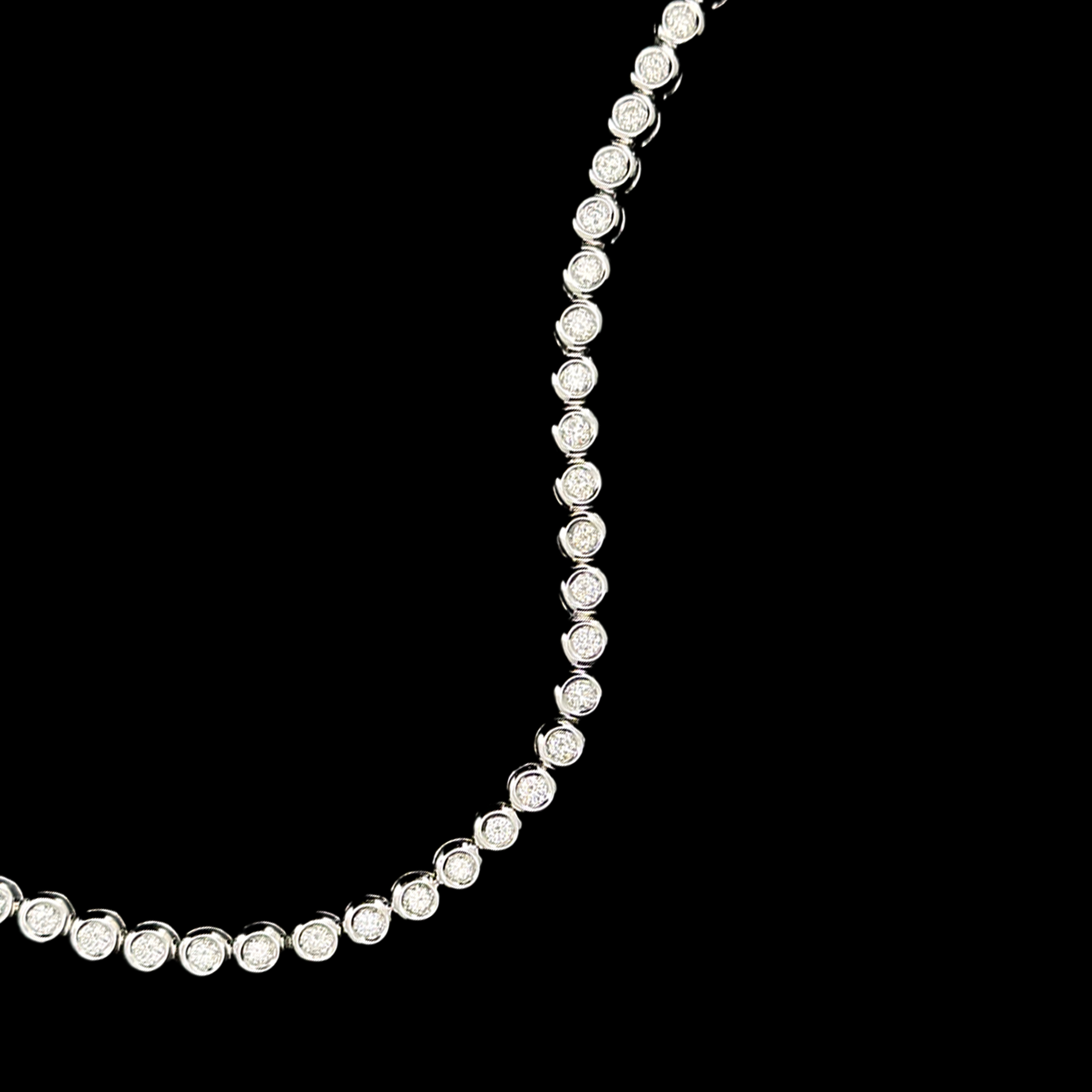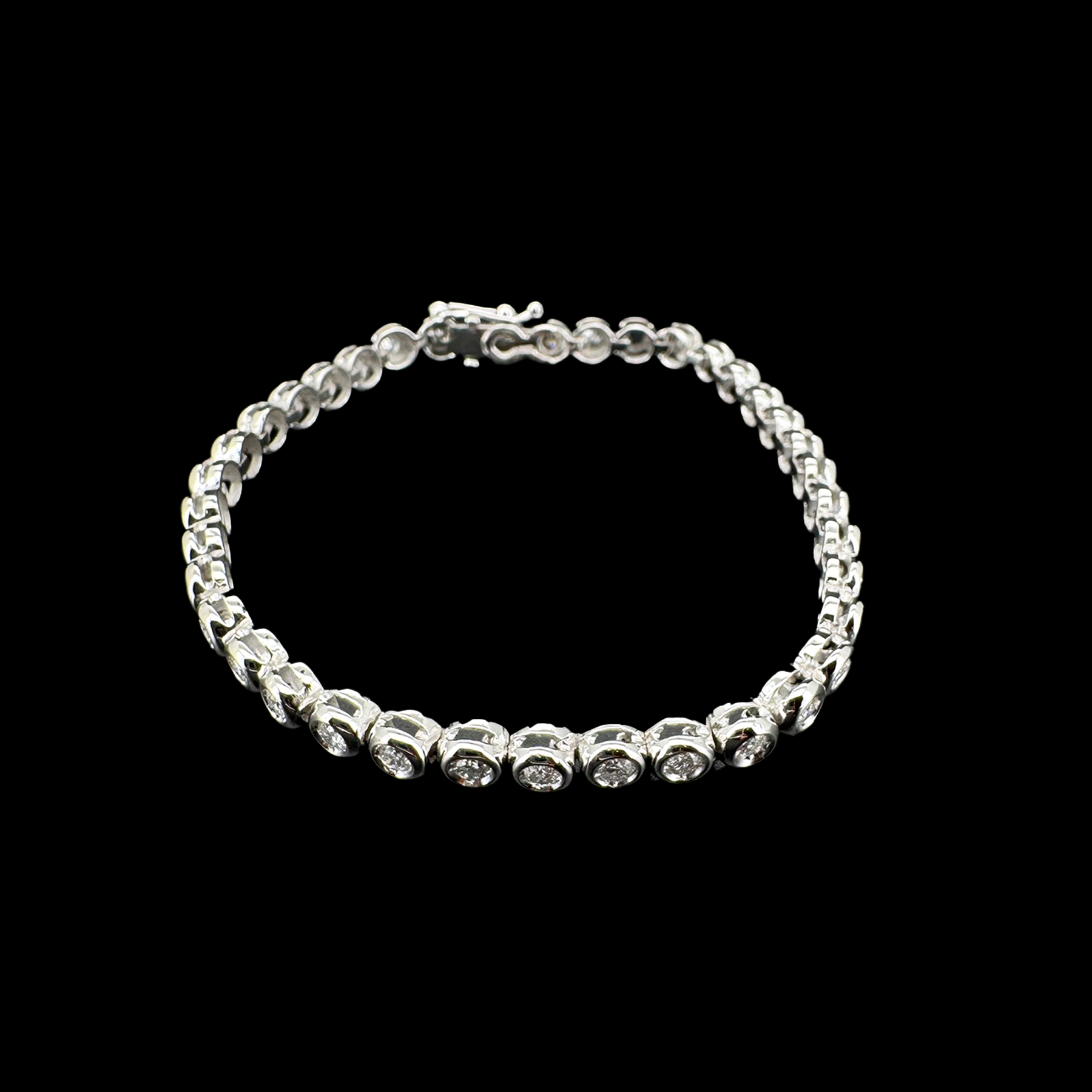 Bracelet Tennis en Or Gris 750, serti de 38 diamants. Fermoir Cliquet avec clip de sécurité attaché.