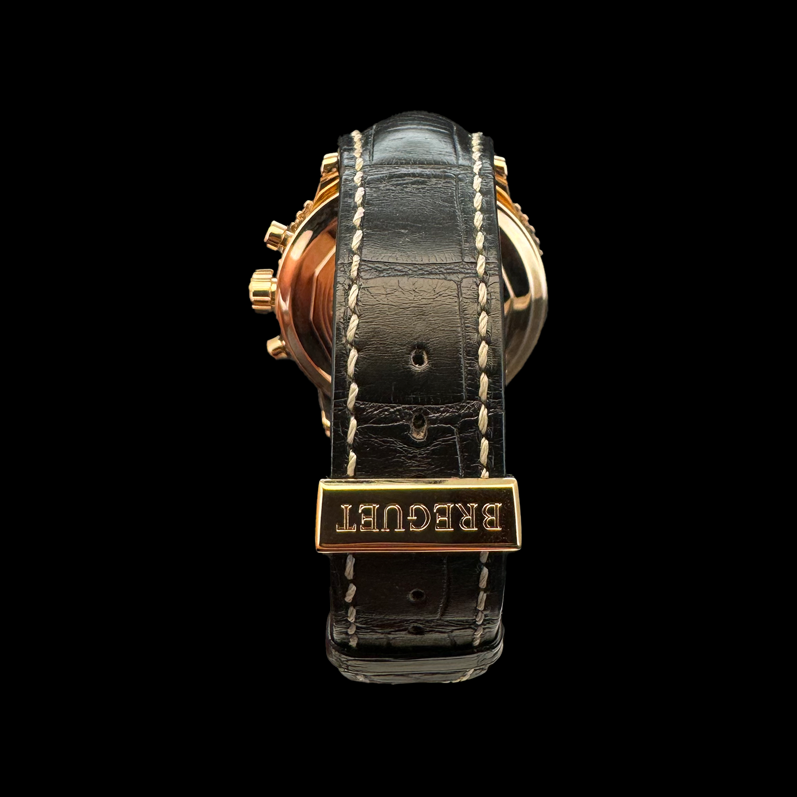 Breguet Type XXI Flyback Chronograph Transatlantique 18 KT Or Rose 42mm, cadran Noir et bracelet Crocodile noir avec boucle déployante en Or Rose.