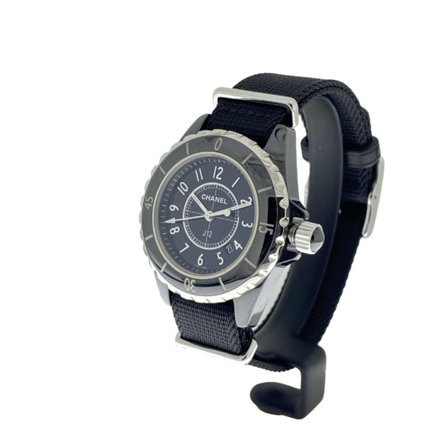 Chanel J12-G10 GLOSS CERAMIQUE NOIRE ACIER QUARTZ TAILLE 33X10,8MM REF. H4657