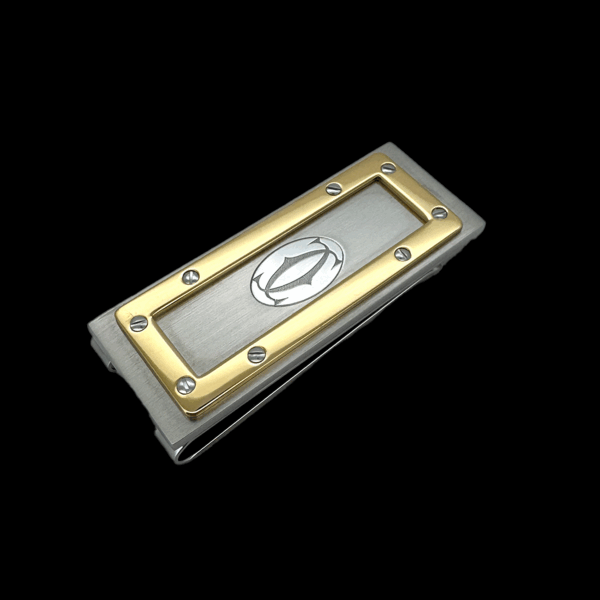 Pince à Billets Cartier Santos Large en Acier et métal finition dorée. Agrafe taille large.